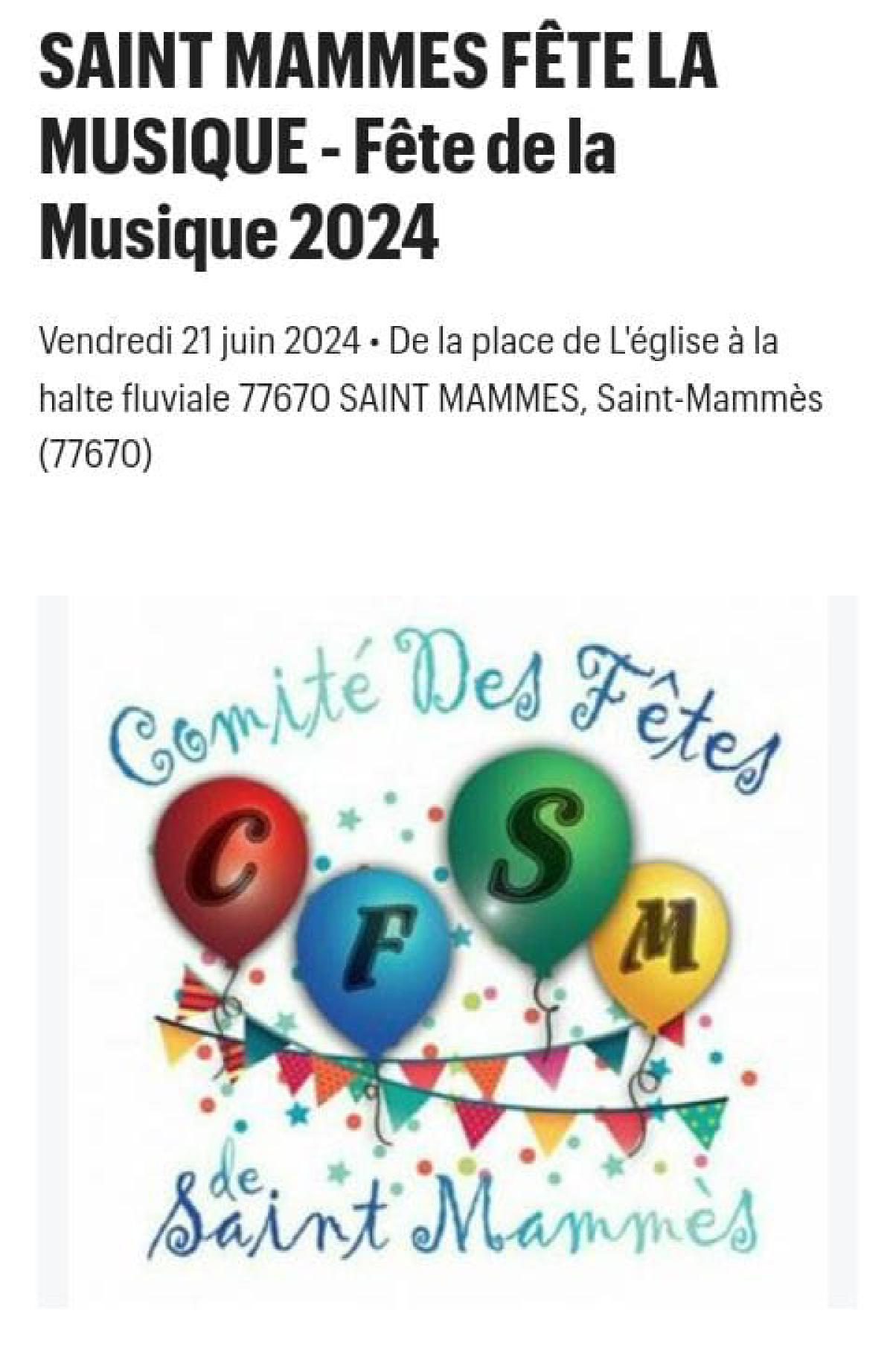 Le comité des fêtes du village de Saint Mammès organise la fête de la musique de 19h à minuit sur le quai de Seine. Dans l’esprit convivial des premières éditions, elle est ouverte à tous amateurs et professionnels pour partager un bon moment musical. Chorale, musiques traditionnelles, bal folk, rock, funk, jazz, bossa, blues guitare, chant… Jam session après 22h30 musiciens, chanteurs n’hésitez pas à nous rejoindre. Pour les autres, on vous attend nombreux dans le public de cette soirée. Parking gratuit sur la place de la Bosse à 500 mètres A bientôt